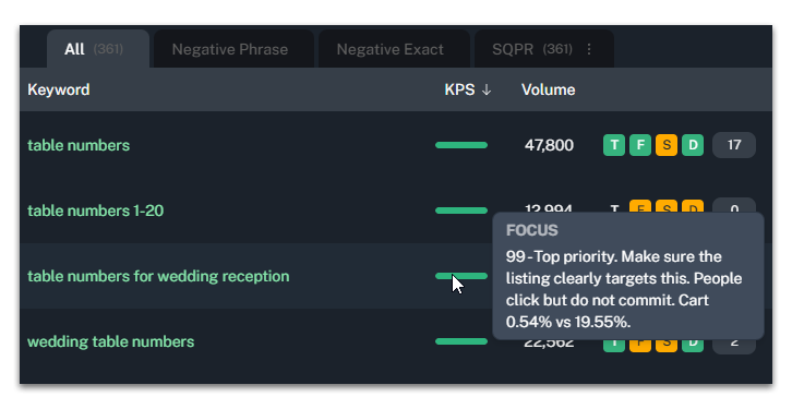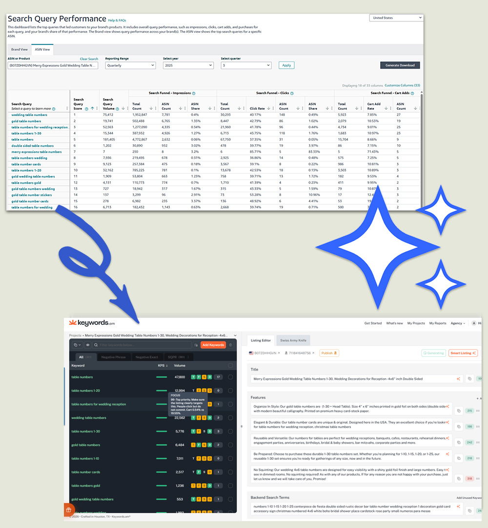 KPS turns Amazon’s Search Query Performance data into clear priorities and practical next steps. It helps you decide what deserves premium listing space and what can wait.