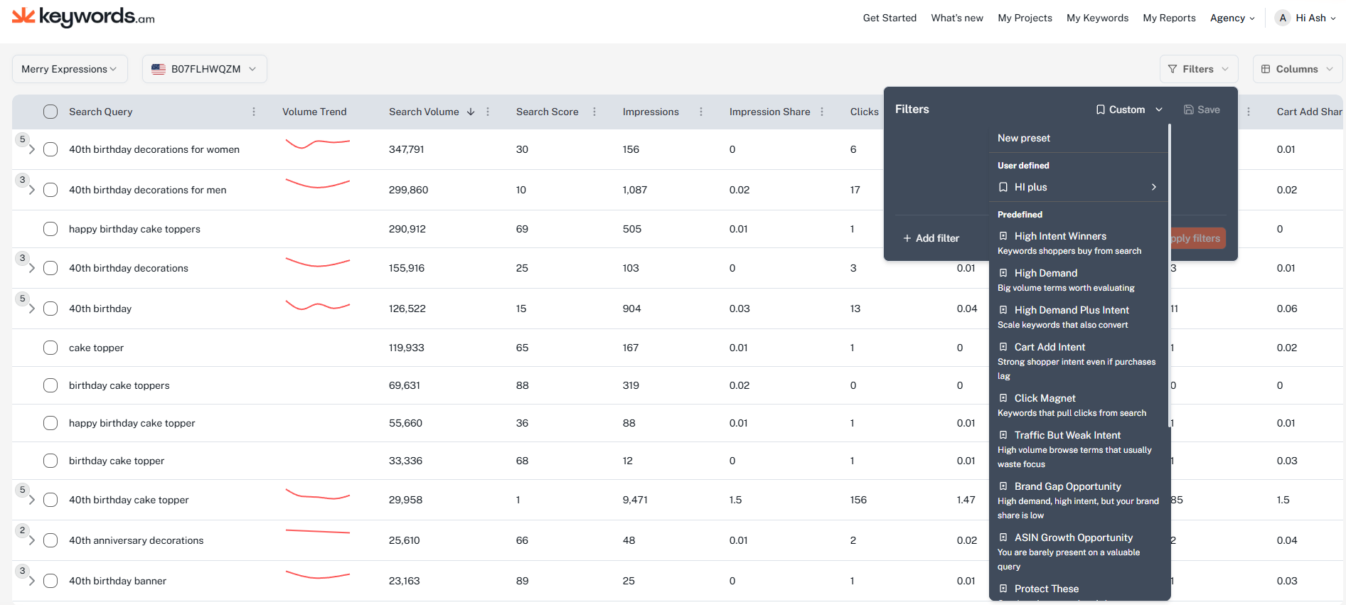 Keywords.am now supports real search volume and performance data through direct integration with Amazon Brand Registry, Search Analytics, and Search Query Performance reports.